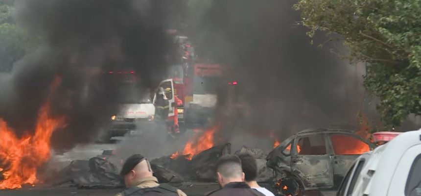 O acidente aconteceu próximo a uma academia. Foram ouvidas pelo menos duas explosões. O local está isolado.