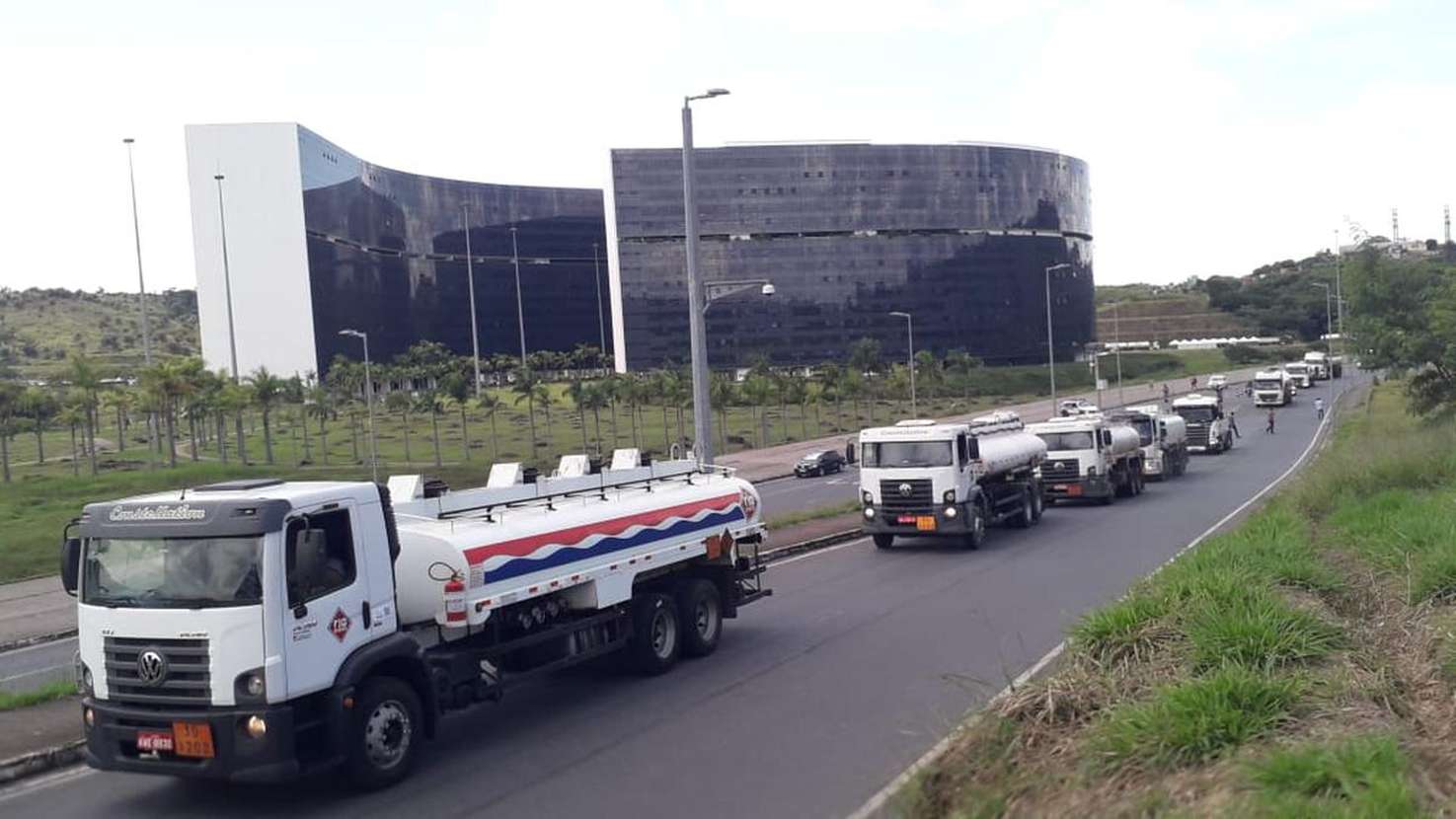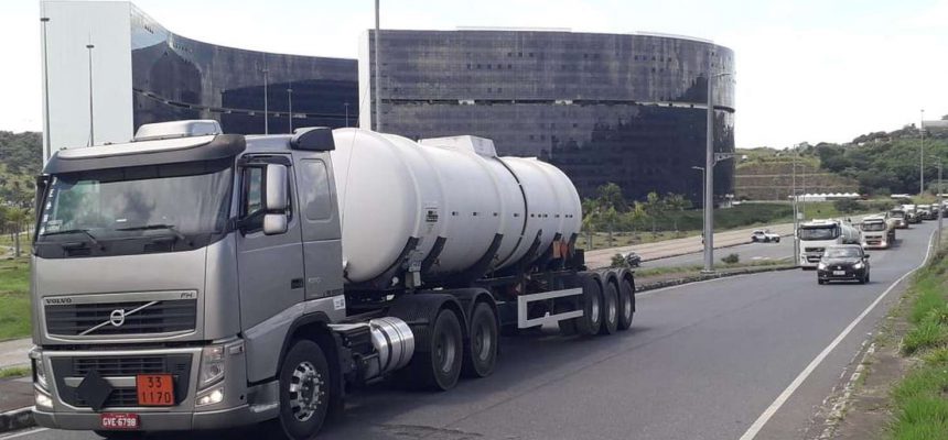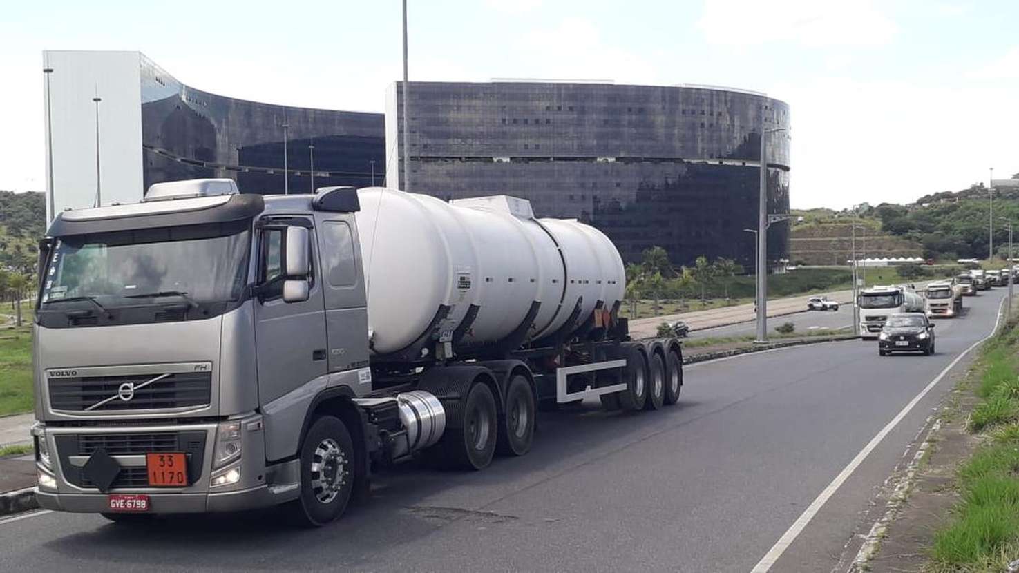 Uma carreata de caminhoneiros contorna a Cidade Administrativa nesta quinta-feira (25/02). A categoria reivindica a redução do Imposto sobre Circulação de Mercadorias e Prestação de Serviços (ICMS) que incide sobre o óleo diesel.
