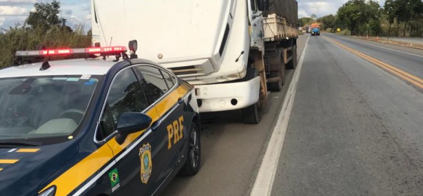 Um veículo de carga foi abordado pela PRF, e após constatações foi verificado que havia adulterações no caminhão e no semirreboque. O condutor não apresentou nota fiscal da carga, e após contato com a PC especializada em roubo de carga, foi constatado que as 31 toneladas de feijão a granel era uma carga roubada.