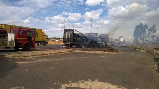 Segundo os militares, um dos sentidos da rodovia precisou ser fechado para o trabalho de controle às chamas. Outro motivo foi a necessidade do resfriamento e deslocamento da carga.