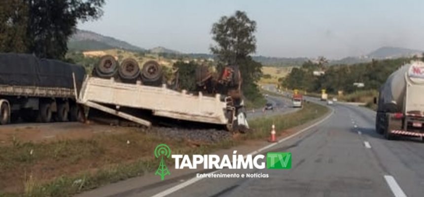 Carreta com carga de ferro tomba e interdita parcialmente pista na BR-262
