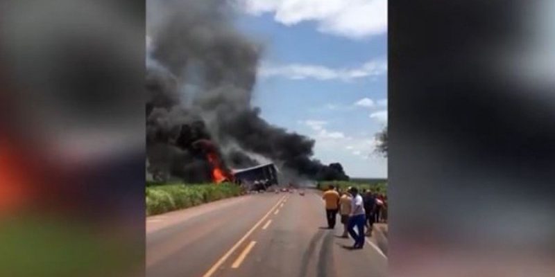 Este gravíssimo acidente foi no último domingo, 23, na BR-267, próximo a Nova Alvorada do Sul, no Mato Grosso do Sul. Com o impacto da colisão, os dois veículos pegaram fogo. O incêndio se alastrou para o matagal às margens da rodovia. O motorista da carreta carregada de biscoitos, William Ramos, ficou preso entre as ferragens ao ser atingido no peito, abaixo do ombro, por uma enorme barra de ferro.