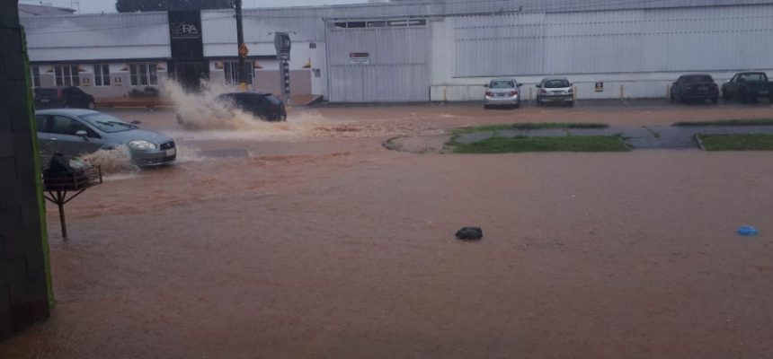 Na tarde desta quinta-feira (27), uma forte chuva atingiu a cidade de Araxá. A avenida João Paulo II ficou alagada, dificultando o trânsito no local.