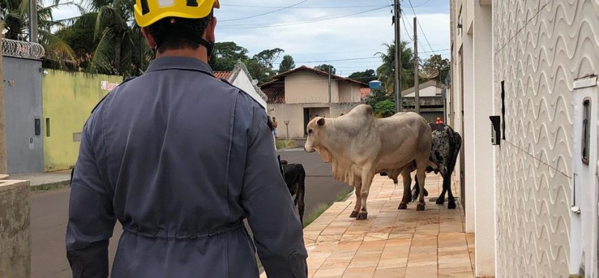 Um boi de quase 600 kg, que estava pelas ruas de Ituiutaba na manhã deste domingo, foi capturado com a ajuda do Corpo de Bombeiros.