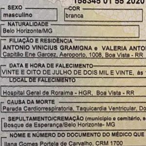 ´´Conforme atestado de óbito a causa morte foi parada cardiorrespiratória, taquicardia ventricular e doença cardiovascular não especificada. Thiago nunca teve Covid e muito menos foi a óbito devido a essa doença…“ afirmou.