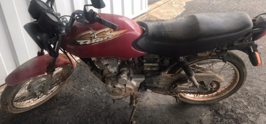 A Polícia Militar foi acionada a comparecer em uma fazenda, na zona rural de Ibiá onde, um homem teria chegado no local e deixado uma motocicleta, que estava sem placa. Após verificar a situação, foi confirmado que a motocicleta era produto de um furto, ocorrido na cidade de Ibiá, no dia 23 de novembro.