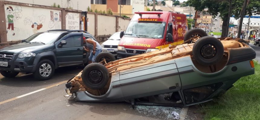 Um veículo Ford Escot capotou, na avenida Vereador João Sena, em Araxá, na tarde do último sábado (5), após o motorista do veículo beber bebidas alcoólicas.