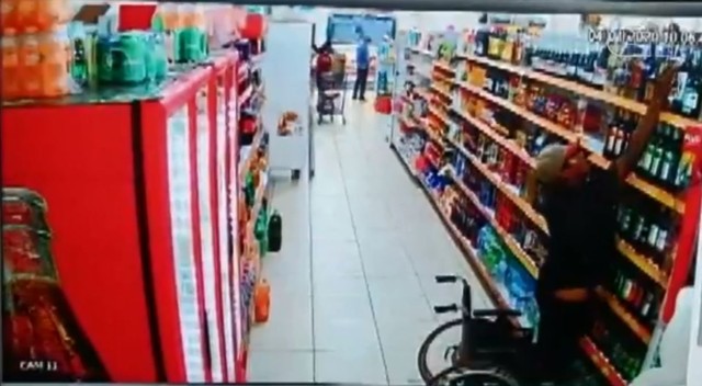 Um homem foi filmado levantando da cadeira de rodas e furtando um whisky escocês em um supermercado, em Foz do Iguaçu, no oeste do Paraná, segundo a gerência do estabelecimento.