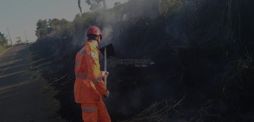 Incêndio é combatido pelos Bombeiros, no Trevo do Bule, em Campos Altos/MG
