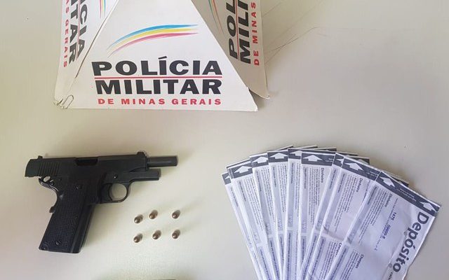 Os policiais prenderam o jovem em flagrante. Ele, o dinheiro e a arma de fogo foram encaminhados para a Delegacia de Polícia Civil.