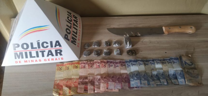 Com eles foram encontrados nove tabletes de maconha, embalados e pronto para o comércio, dinheiro e uma faca grande. Na residência do adolescente foi encontrado, mais um tablete de maconha.