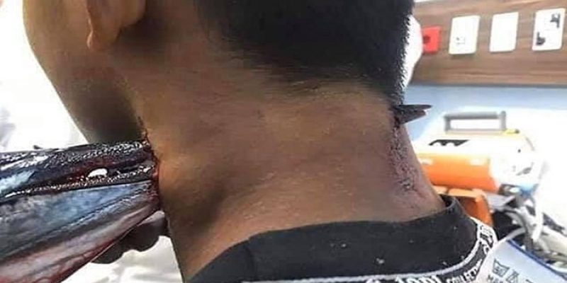 Imagens fortes divulgadas na internet mostram como o focinho longo e delgado do peixe atravessou o pescoço do jovem. De acordo com o jornal indonésio Antara News, Idul foi levado às pressas para o Hospital Wahidin Sudirohusodo.