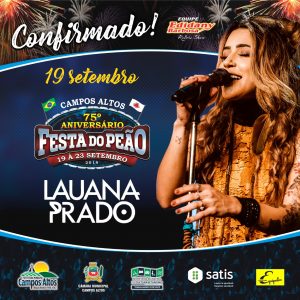 A segunda feira foi de muita alegria para muitos camposaltenses, e para moradores da região. No fim da tarde de ontem, a assessoria da Festa do Peão 2019 anunciou a apresentação da cantora Lauana Prado.