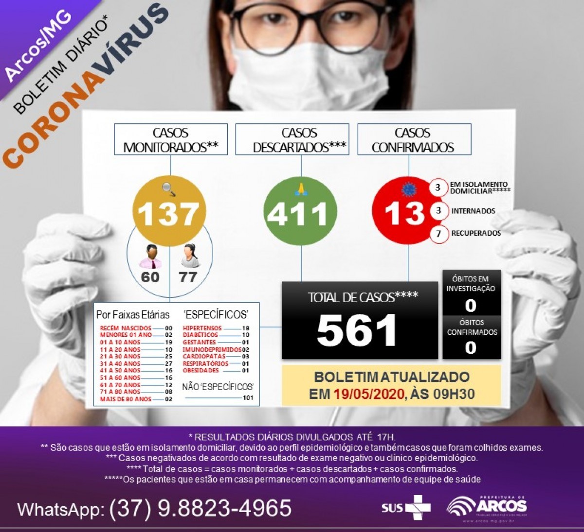Ontem a cidade de Arcos anunciou mais dois casos confirmados subindo para 12 o número de infectados pelo Corona Vírus. Hoje na manhã dessa terça- feira (19), mais um caso foi confirmado, somando 13 casos no município.