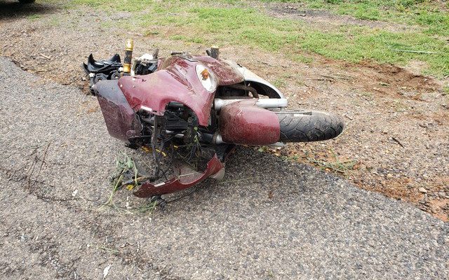 Após o impacto, a moto ainda voltou para no acostamento.
