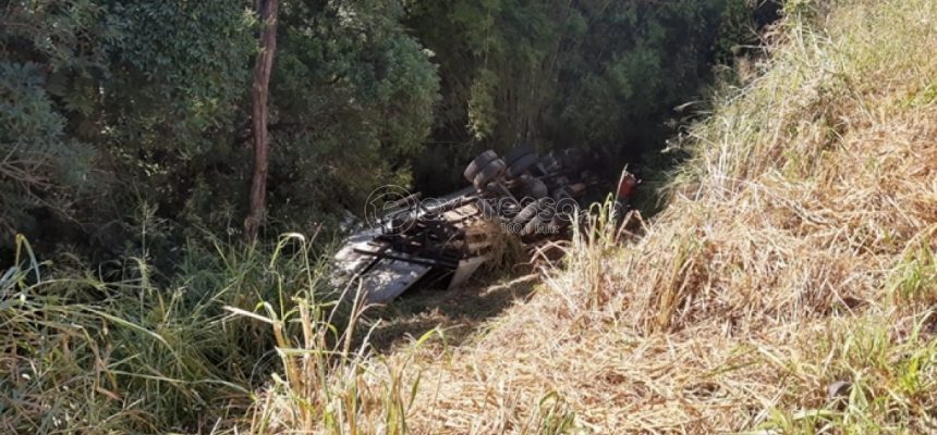Motorista passa a noite preso às ferragens, após caminhão cair em ribanceira na BR-354