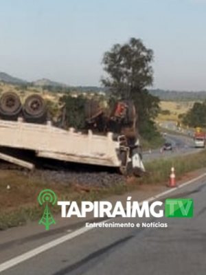 Carreta com carga de ferro tomba e interdita parcialmente pista na BR-