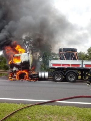 Caminhão pega fogo e gera congestionamento na BR-050 entre Uberlândi
