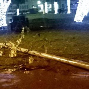 Poste de luz desaba próximo a pedestres em feira de Uberaba; uma pess