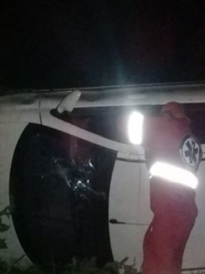 Senhor e criança sofrem acidente e ficam feridos após carro capotar