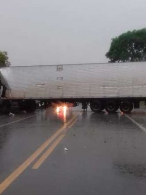 Carreta derrapa em pista molhada e provoca acidente na BR-262 em Campo