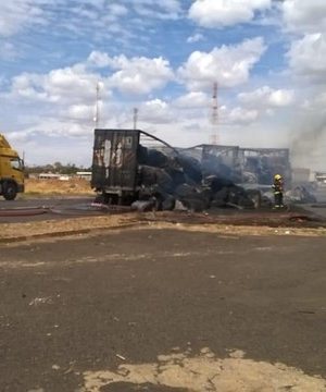 Carreta com algodão pega fogo na BR-050, entre Uberaba e Uberlândia