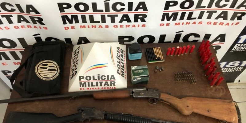 De posse de um mandado de busca e apreensão os militares realizaram buscas no interior de uma residência, onde foi encontrado em guarda-roupas duas armas de fogo (espingardas), sendo uma calibre .28 e outro .22. Também foram encontrados 33 cartuchos intactos .22, 09 cartuchos intactos de calibre .28, 16 cartuchos deflagrados calibre 28, 43 espoletas para recarga, 01 pote de pólvora para recarga e 04 esferas.