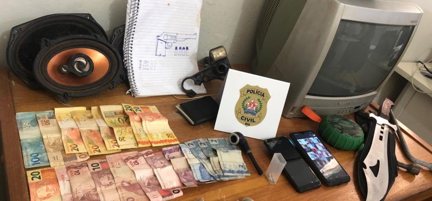 No imóvel foi apreendido 11 buchas de substância semelhante a “maconha”, vários celulares, objetos fruto de receptação, grande quantidade em dinheiro “picado” proveniente da venda de drogas, uma roda do carro, que supostamente, foi usado no homicídio do dia 12 em Campos Altos que vitimou o jovem Felipe Silva da Cruz, de 22 anos. Também foi apreendido facas e um caderno com a contabilidade do tráfico de drogas na região.