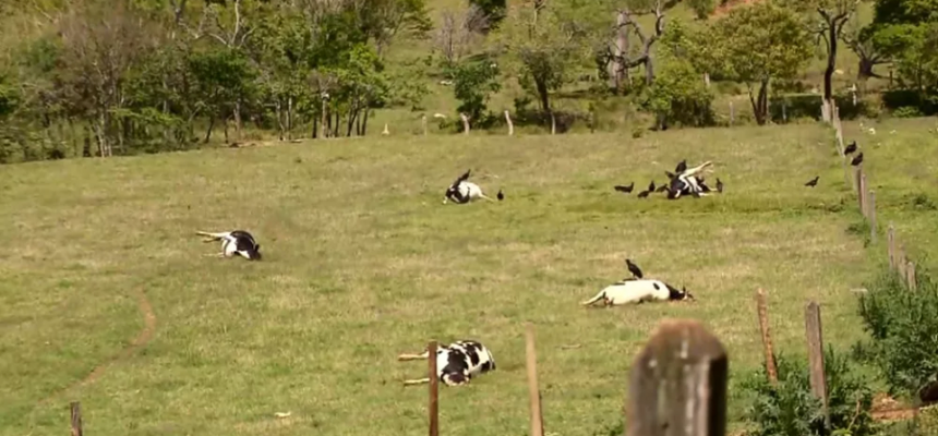 A Polícia Civil investiga a morte de 14 vacas que teriam sido envenenadas em um sítio de Caldas (MG). A suspeita de produtores de leite é que os animais tenham sido envenenados por conta de uma briga de família por herança.