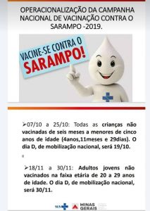 Crianças com idade de seis meses a menores de cinco anos devem se vacinar contra o sarampo. O dia D de mobilização nacional será dia 19 de outubro.